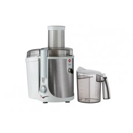 قابليت آبگيري به صورت كامل- 500 وات-دهانه ورودي بزرگ براي آبگيري ميوه ها به صورت كامل بدون نياز به برش-قطر دهانه ورودي 75ميلي متر-دو سرعت متفاوت براي آبگيري ميوه هاي نرم و سخت-پوشش بدنه از جنس آلومينيوم-ظرف مدرج مخصوص جمع آوري آبميوه با ظرفيت 1 ليتري-در پوش و دستيگره و تيغه كاهش دهنده لرزه-ظرف مخصوص جمع آوري تفاله-بسكت و تيغه از جنس استيل ضد زنگ-ميكروسوئيچ ايمني